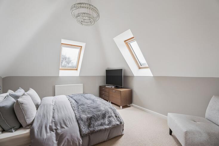 The spacious first-floor landing leads to the second floor, where a vast additional room provides the perfect teenage retreat, games room or further bedroom if required. A large and easily accessible store room offers excellent additional storage.