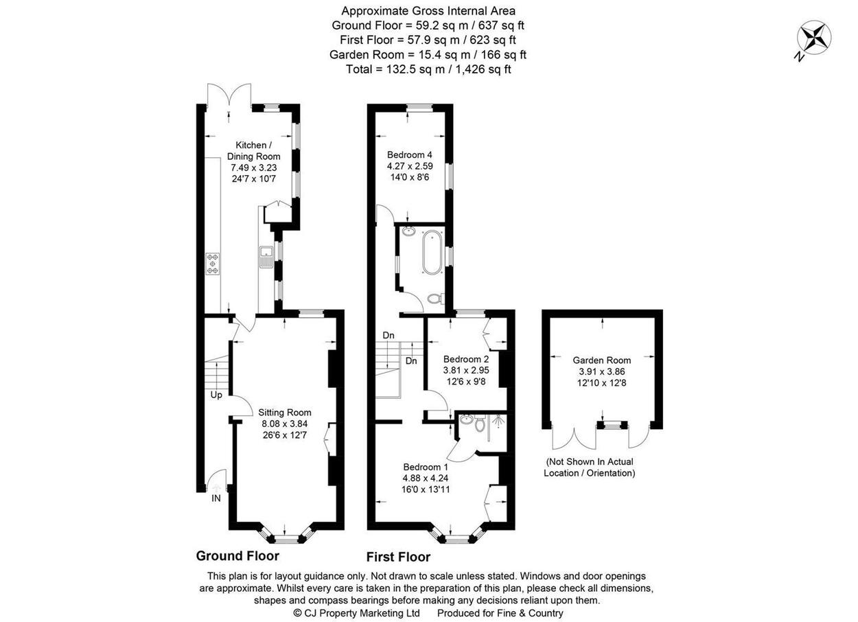 A fantastic three bedroom home offering well proportioned accommodation and a generous garden with home office/ gym. The large reception room is flooded with natural light from the large bay window to the front aspect and the sash window to the rear aspect. With original features such as coving and deep skirting boards, this home combines period features and contemporary design particularly well. The stylish kitchen/ breakfast room has been thoughtfully considered to maximise the use of space. On the first floor there are three double bedrooms including principal with ensuite and a family bathroom. The rear garden is accessed via French doors from the kitchen/ breakfast room. The garden is a great feature to this home, with a large area of lawn which leads up to home office/ gym.