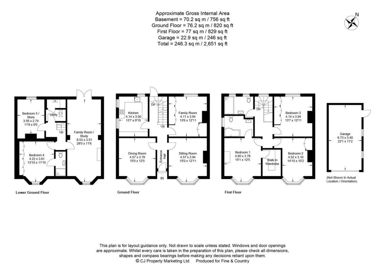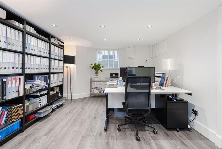 The lower ground floor provides a superbly proportioned reception room, currently in use as a study and family room, with double doors leading to steps rising to the garden, offering the potential for separate access if required. This level also includes a double bedroom with en-suite, a utility room and a fifth bedroom currently utilised for storage.