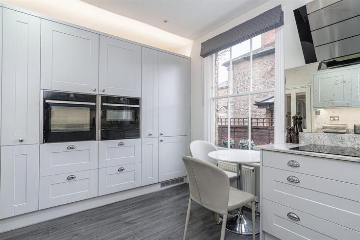 This impressive townhouse has been thoughtfully updated and enhanced by the current owners, showcasing exceptional attention to detail and intelligent design throughout. The ground floor offers three well-proportioned reception rooms, rich in character and charm, featuring fireplaces, picture rails and decorative coving. The kitchen has been redesigned and fully modernised, complete with granite work surfaces and integrated appliances.