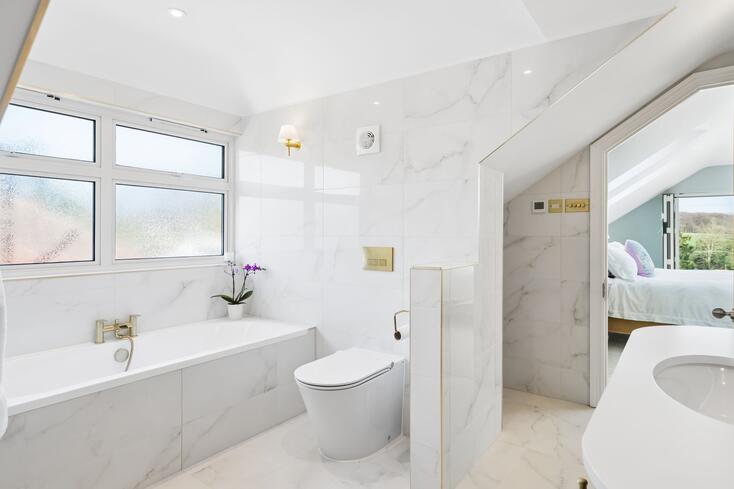 Designed to provide a high degree of flexibility, Beechwood is a fantastic home for everyday family life and entertaining which has been updated by the current owners to include modern conveniences such as air source heat pump, underfloor heating and new aluminium windows and doors to name a few. Accommodation comprises four double bedrooms which could be utilised as additional reception space if desired, serviced by a stylish shower room. The main living space is located to the rear, taking full advantage of the stunning views with a large sitting room with feature inglenook fireplace and bi-fold doors to the garden, dining room also with bi-fold doors to the garden, and well-appointed modern kitchen with separate utility room and pantry allowing ample storage. A cloakroom completes the ground floor accommodation. The principal suite occupies the entire first floor and is a luxurious space with Juliet balcony in the bedroom allowing views over open countryside and an ample walk in wardrobe and beautifully finished en-suite bathroom. Outside the garden is mainly to lawn with two decked areas for seating. The gated driveway offers ample parking with the benefit of a detached garage and carport with EV charger to the side of the property. St Leonards, set within the Chiltern Hills AONB, boasts a vibrant and active community with excellent accessibility to the surrounding countryside. Wendover Woods is a short distance away and offers a range of amenities including scenic walks, bridleways, a cafe, and childrens' playground. The market towns of Tring, Wendover, Berkhamsted, and Chesham are all within easy reach, offering a variety of shopping, dining, and leisure facilities. The area is also well served by highly regarded independent and state schools, with the advantage of access to the Bucks Grammar School system.